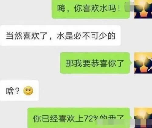 11. “你喜欢喝水吗?”“喜欢啊”“那你已经喜欢上百分之八十的我了。”