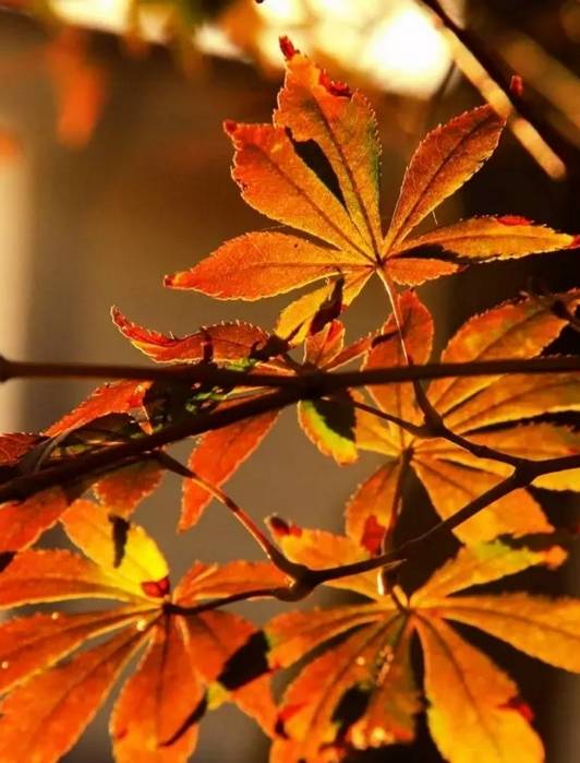 12. 千树万树的红叶,愈到秋深,愈是红艳,远远看去,就像火焰在滚动。