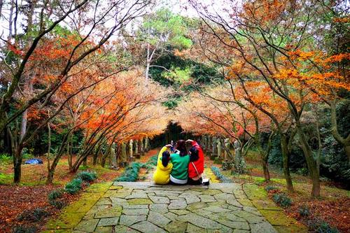 16. 秋天,枫叶一个个落地,像一个红红的地毯。