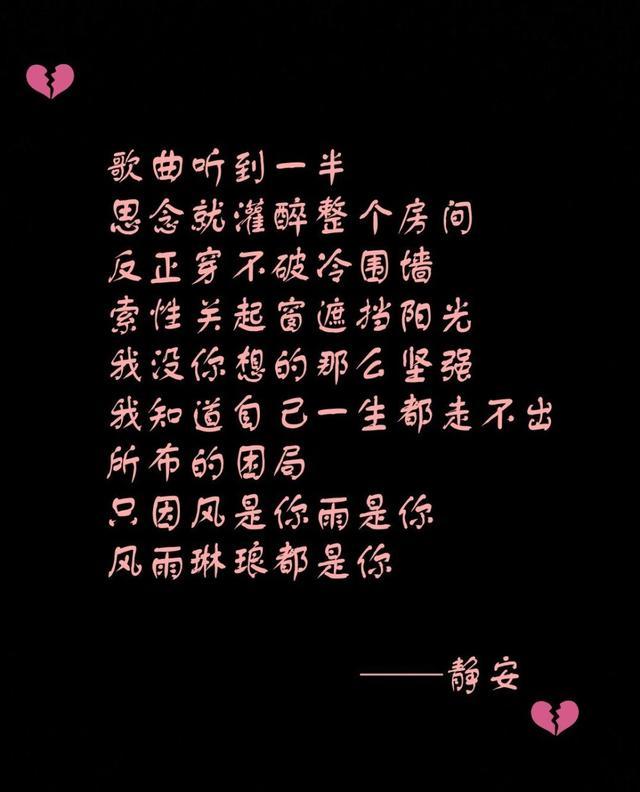 1. 我怀念的不是你,而是你给的致命曾经。,碎了一地的诺言,拼凑不回的昨天。 最疼的疼是原谅,最黑的黑是绝望。,是你苍白了我的等待,讽刺了我的执着。,沿途的风景,我只能边走边忘。 我们始终都在练习微笑,终于变成不敢哭的人。 曾经海枯石烂,抵不过好聚好散。