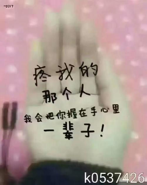 2. 把你的名字写在手心,摊开时是想念,握紧时是幸福。就想这样,手牵手给你一世的温柔;就想这样,肩并肩给你一生的幸福!